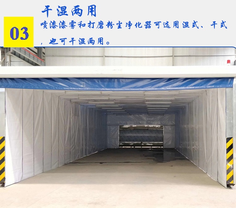 移動式伸縮噴漆房是一種在使用時,可以自動展開形成封閉或半封閉的環(huán)保噴漆房,不使用時收縮合攏到一