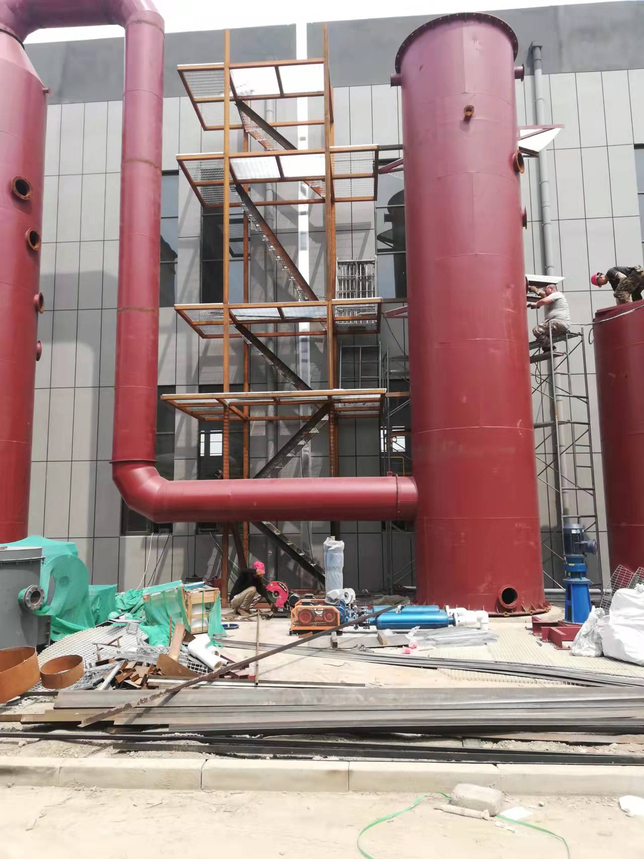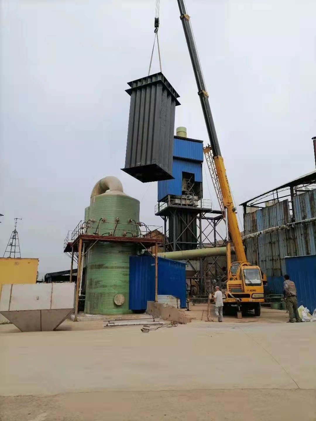 里,含塵廢氣與水霧充分混合洗滌、中和反應(yīng)(水里面補充酸堿時)